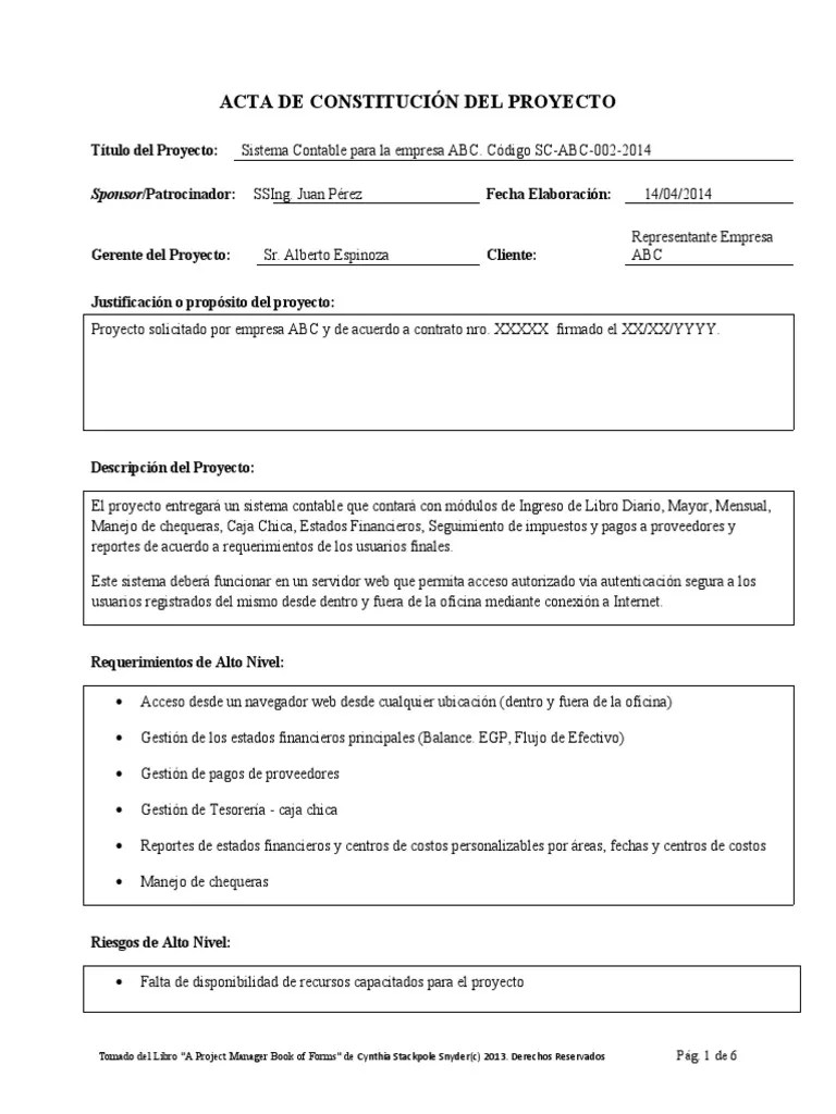 Project Charter Español Ejm. Sistema Contable PDF Contabilidad