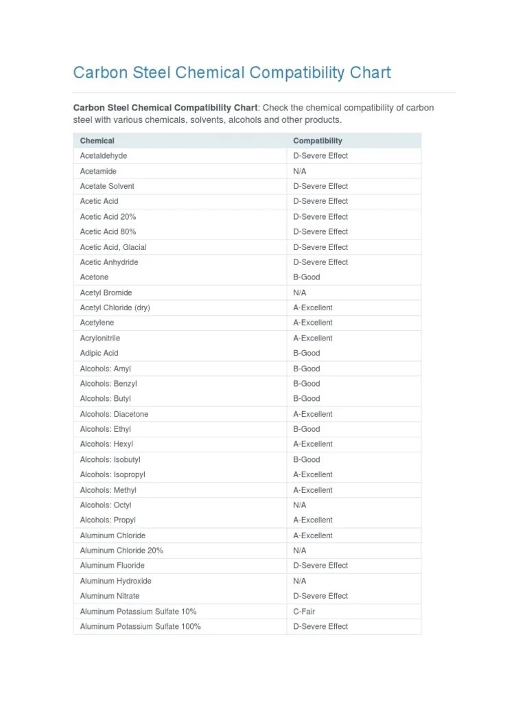Carbon Steel Chemical Compatibility Chart PDF Sodium Hydroxide