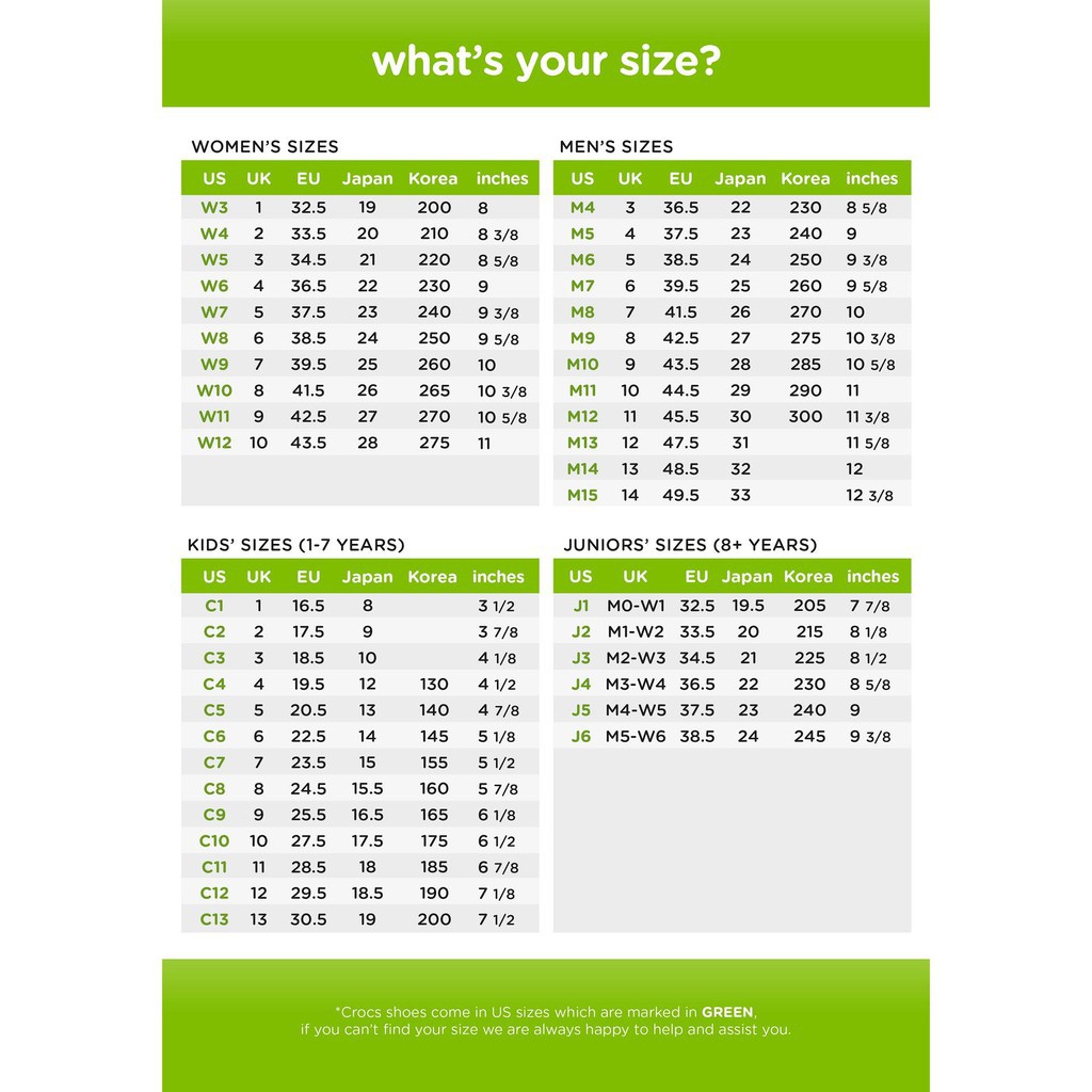 Croc Sizes Chart