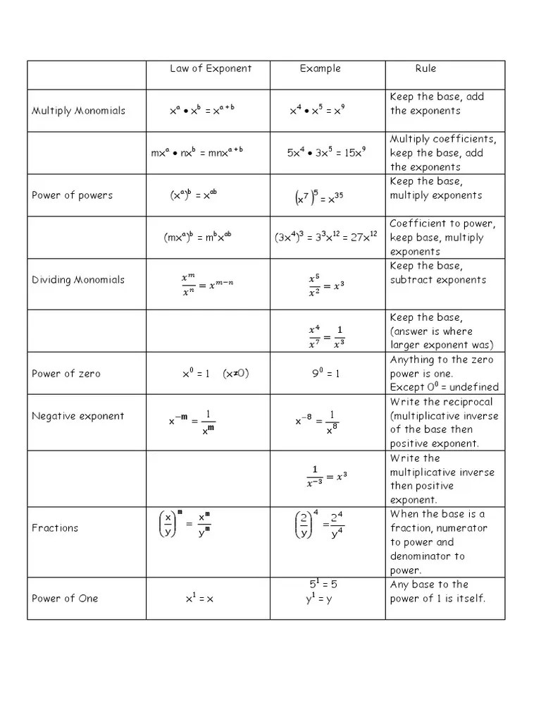 Exponent Rules Law And Example Studying math, Math lessons, Exponent