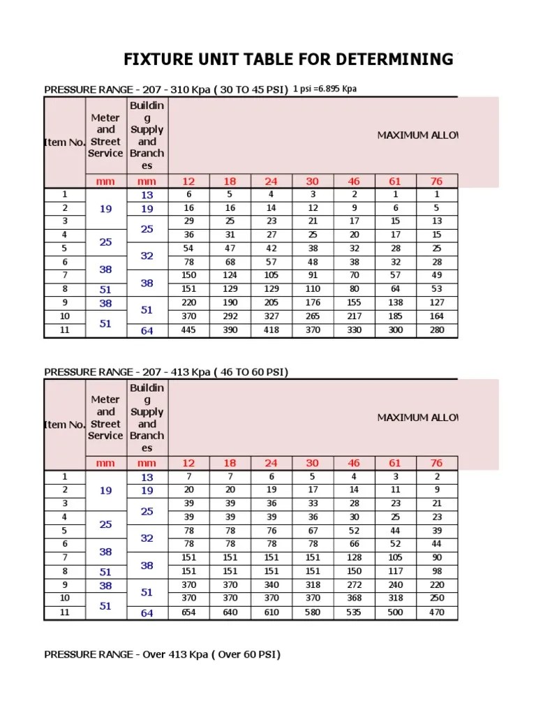 Fixture Unit Table For Determining Water Pipe Sizes PDF Chemical
