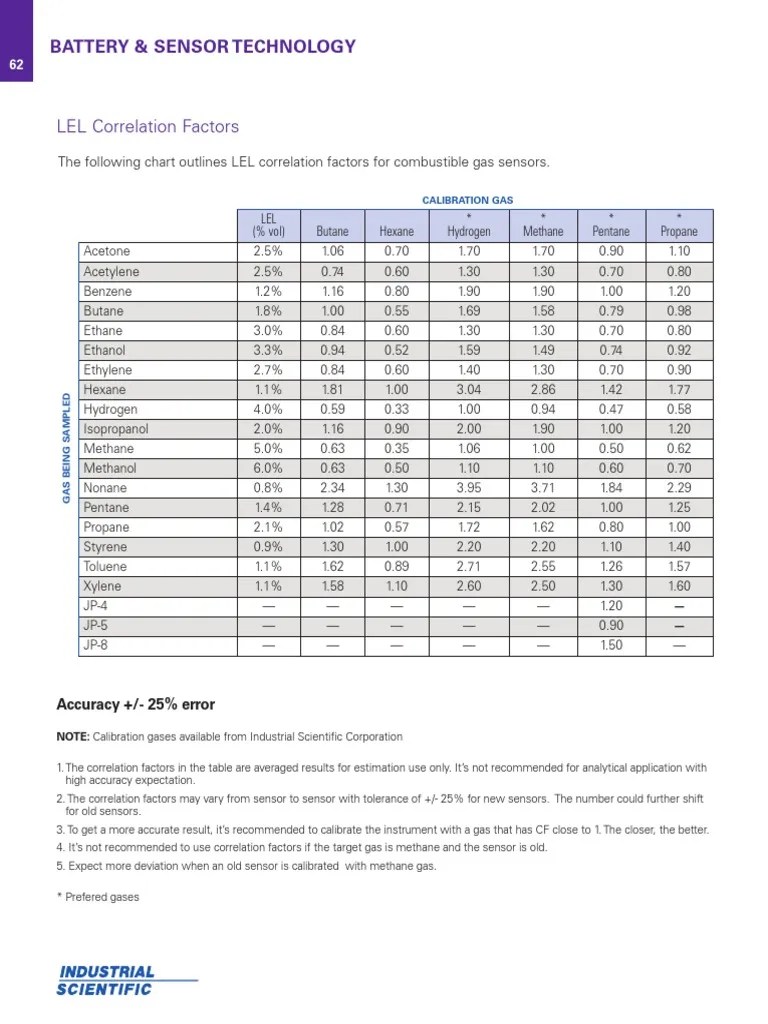 LEL Correlation Factors Chart for Combustible Gas Sensors PDF