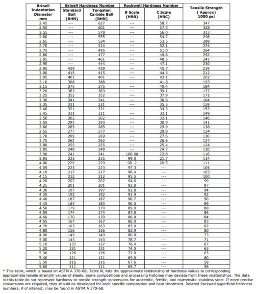 rockwell hardness conversion chart Hardness conversion rockwell brinell
