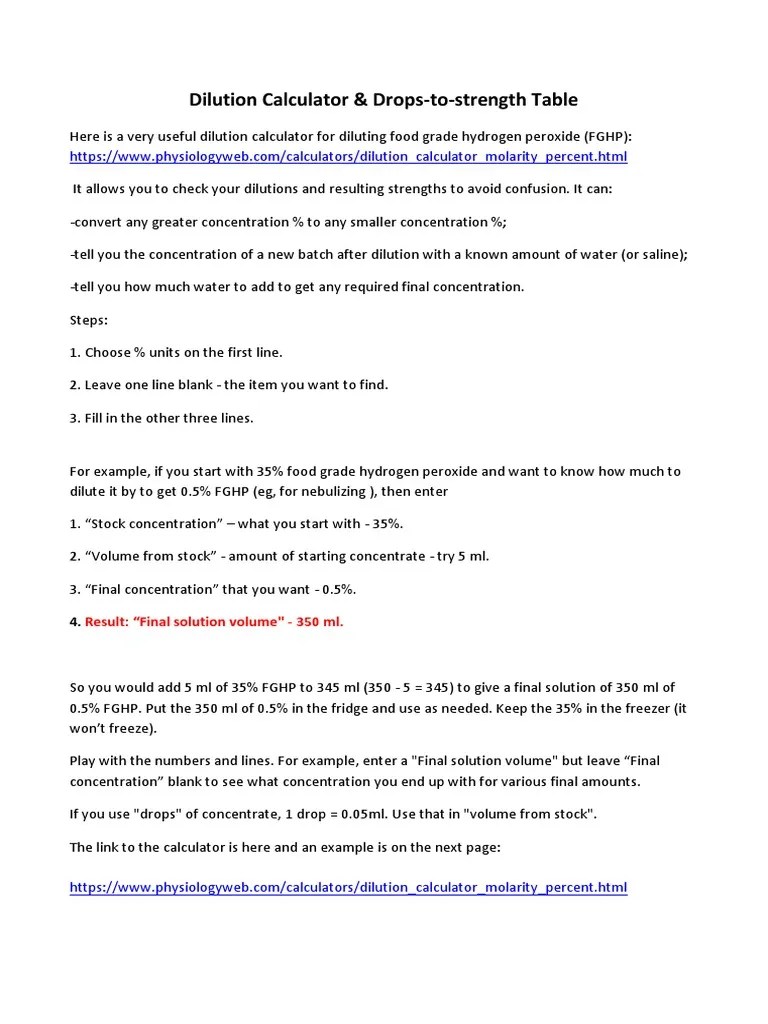Dilution Calculator Hydrogen Peroxide PDF Concentration Hydrogen
