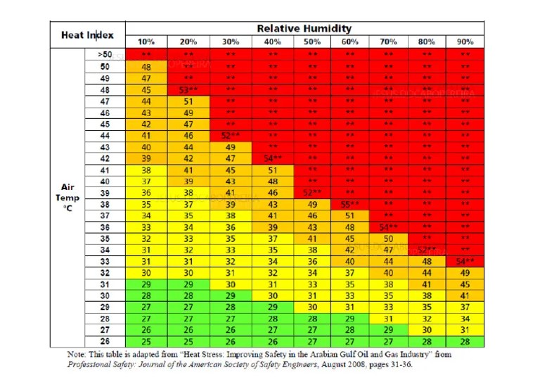 Heat Index Chart PDF Hyperthermia Humidity