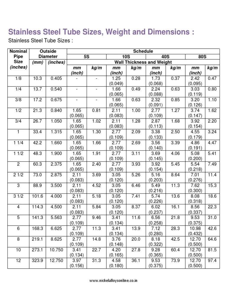 Stainless Steel Tube Sizes Weight and Dimensions PDF Pipe (Fluid